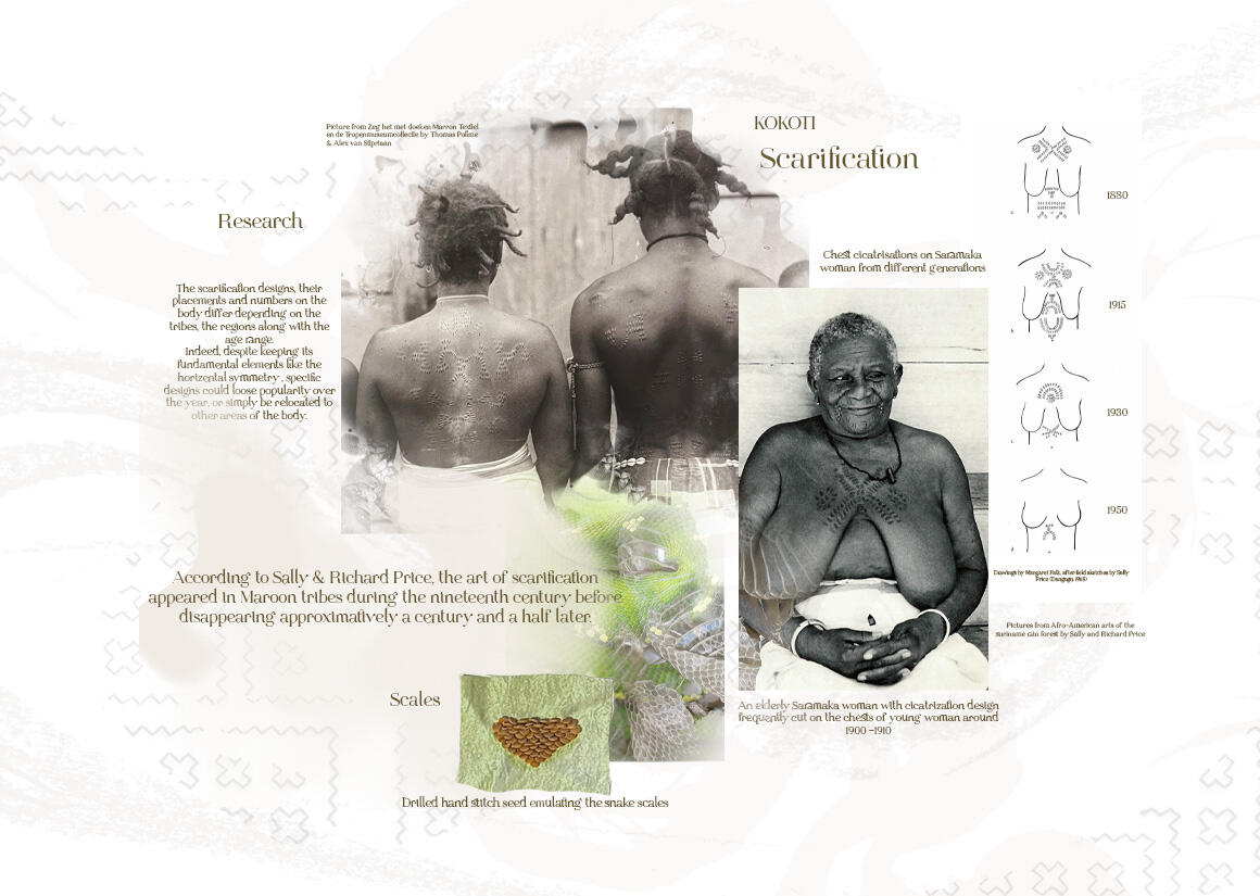 This S/S collection took inspiration from traditional practices of Maroon tribes of Guiana. Their communicative art known as Tembé is intricately infused with various moiré patterns to be included as a print element in the project.Guiana is the home of a vast amount of people from different ethnicities and/or nationalities. Recently, due to socio-political reasons, tensions between groups have been slowly emerging. In an attempt at reconciliation, this collection named DAЇ ATI revolves around the following three words : Solidarity, Discussion, Friendship and their Tembé symbolics.